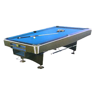 配置说明:优质进口南洋木和优质国产板材贴防火板及PVC面,有石板调平螺栓,台脚底部带有独特升降器,可根据各自要求调节台高,国产三羽蓝色,比利时普通球1,灯罩1,杆架1,三角框1,台罩1,球杆4,巧克粉12。